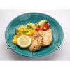 Pechuga de pollo grillada , arroz (escoger entre arroz árabe, arroz blanco o arroz al curry) y vegetales salteados.